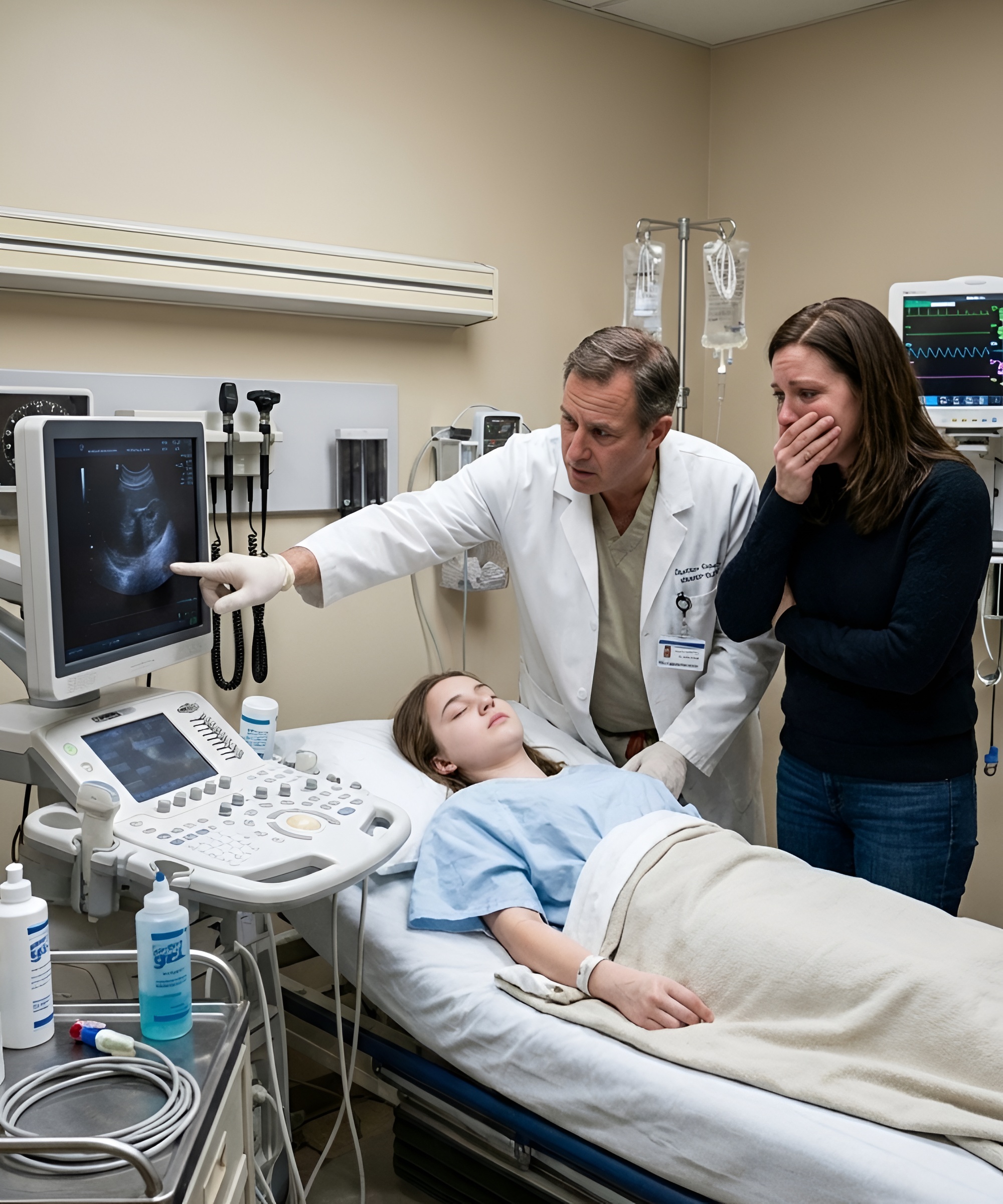 Tests followed in a blur — blood draws, IV fluids, gentle but probing hands pressing against her abdomen. When she gasped in pain, I felt it like a punch to my ribs.